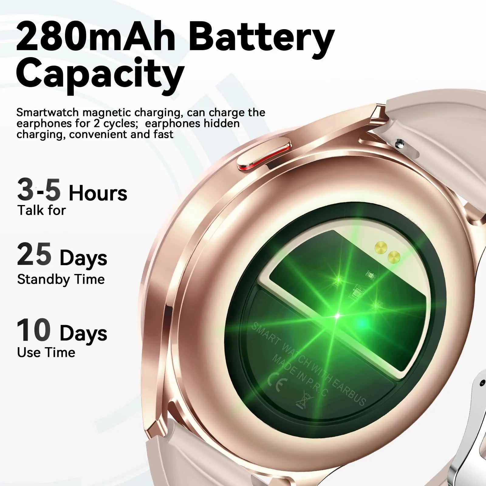 Meet your all-in-one fitness companion: a round 1.39-inch smartwatch with built-in earbuds for seamless workouts and calls.