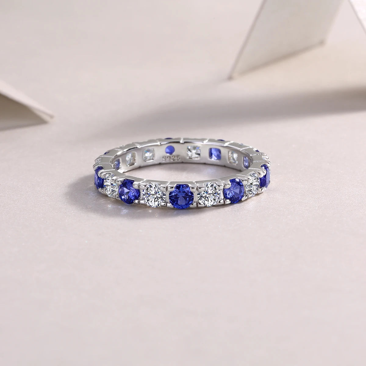 Elegant S925 Silver Ring with Alternating Moissanite & Blue Sapphires, 18K Gold Plated, Exquisite Design, Includes GRA Certifica