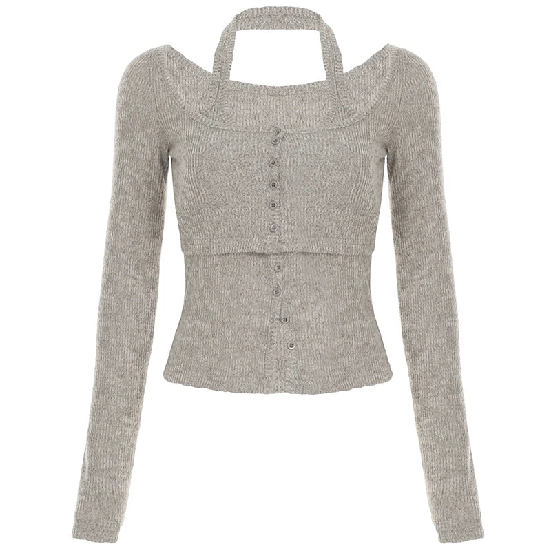 Effortless chic meets versatile layering in this Sweetown Women’s Halter Top and Long Sleeve Blouse Set, designed to keep your look polished from day to night.
