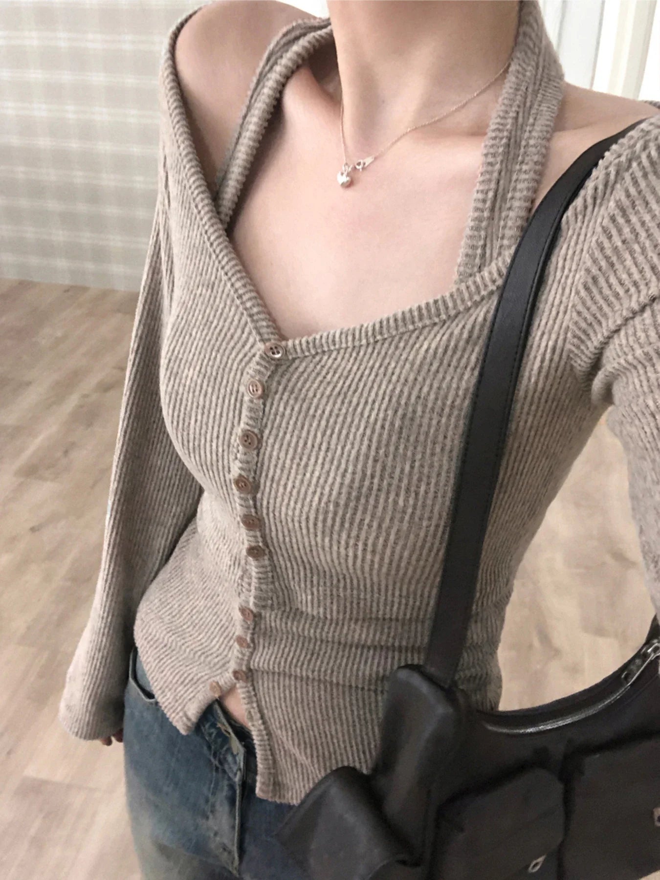 - Wear the halter top solo for warm weather or pair it with the long sleeve blouse for a refined, two‑piece look with subtle tiered detailing.