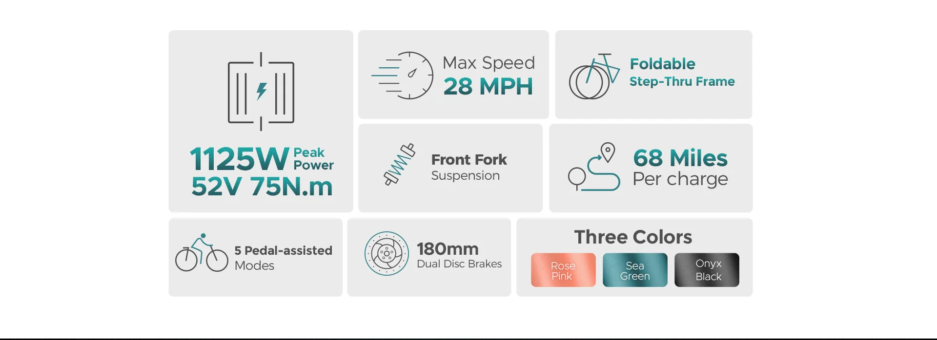 - Powerful 750W peak motor delivers confident torque for steep climbs and rapid acceleration, while the 52V 13Ah battery provides up to 68 miles per charge.