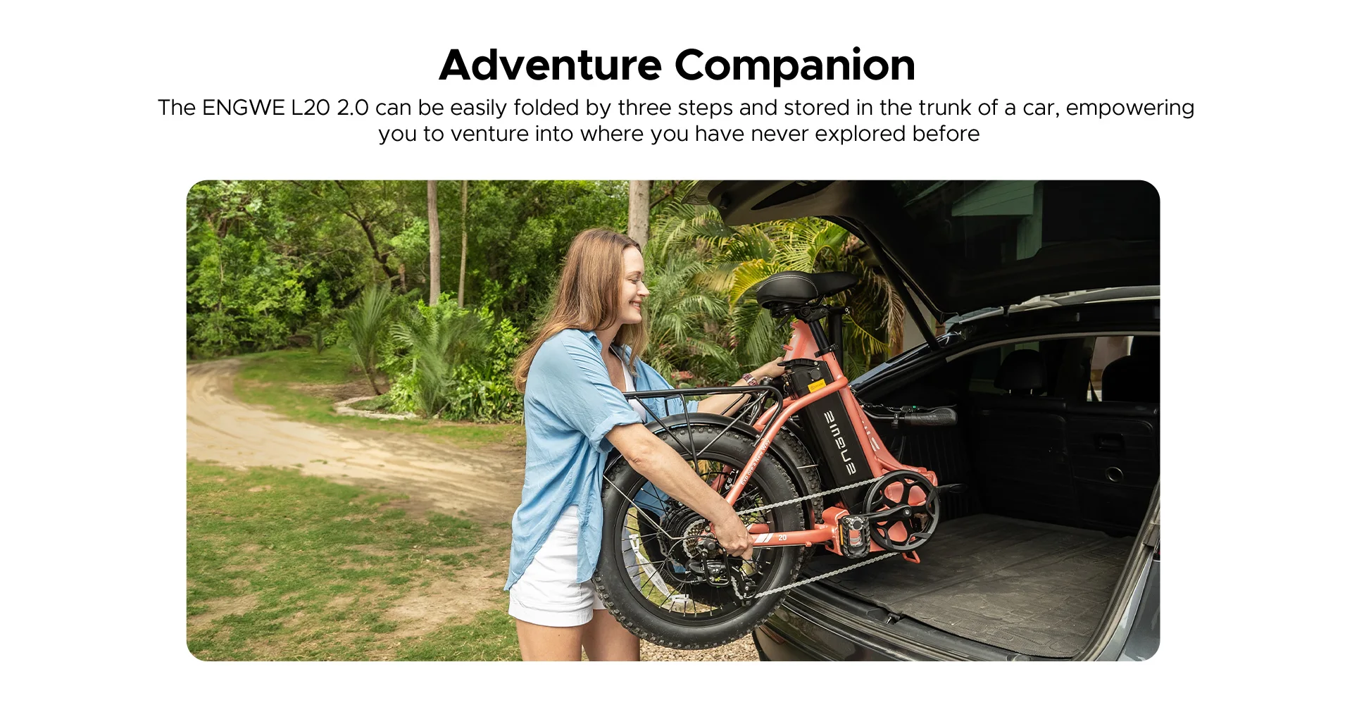 Experience bold urban adventures and long-distance commuting with the Engwe L20 folding electric bike, built to conquer hills, handle rough roads, and store neatly in tight spaces.