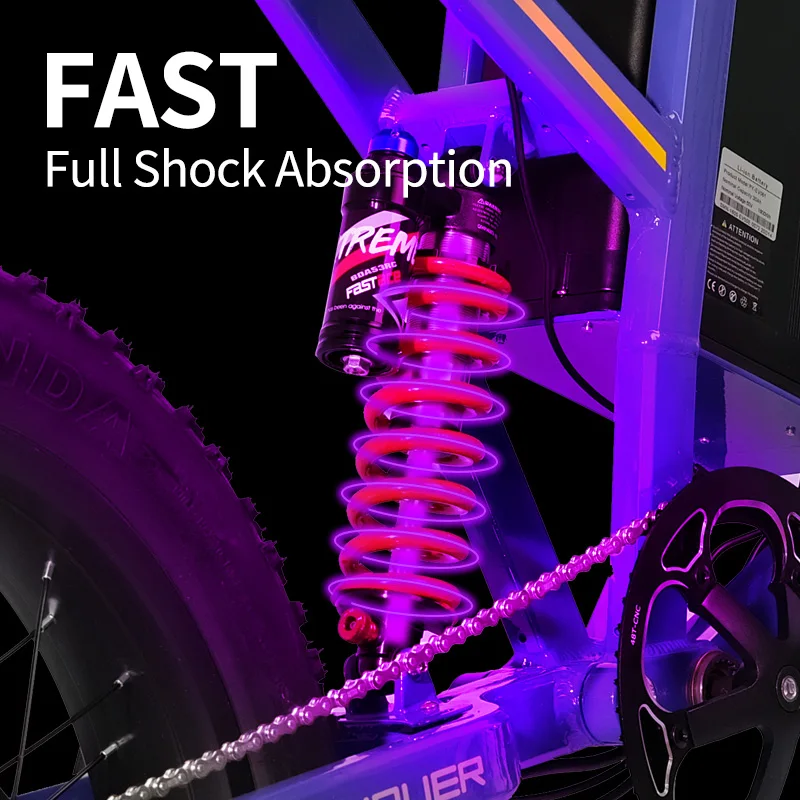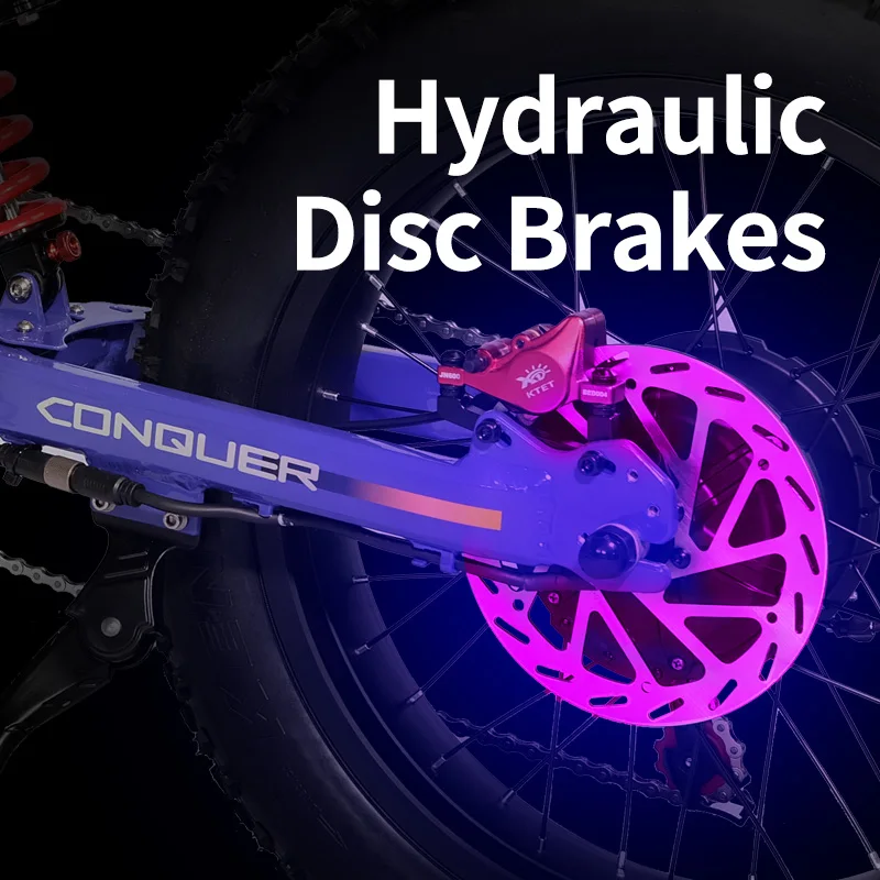 - Your sturdy aluminum alloy frame, with adjustable dual-spring suspension and hydraulic oil brakes, supports you up to 200 kg for stable handling on rough trails.