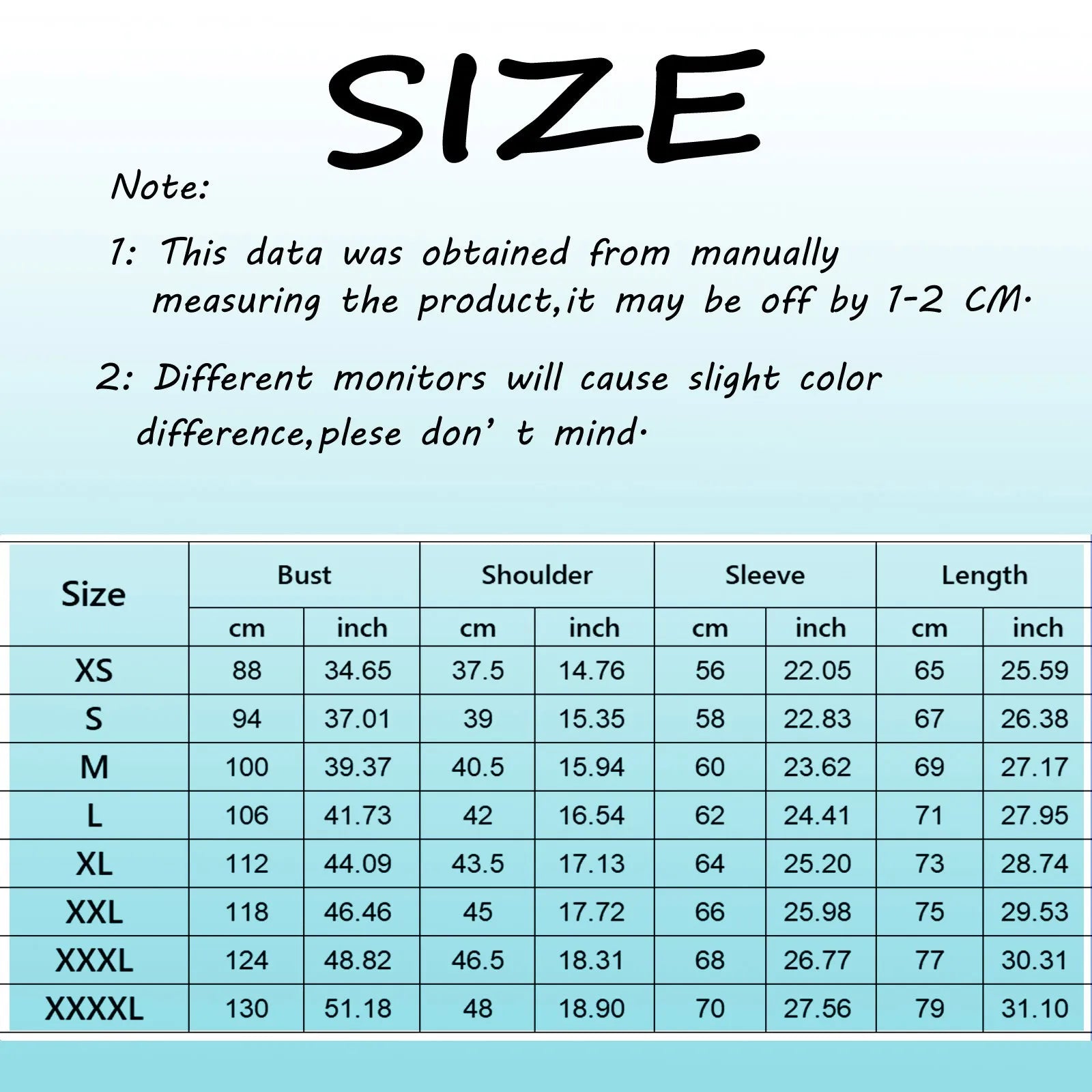 | Size:XXXXL | bust:130cm/51.18'' | Shoulder:48cm/18.90'' | Sleeve:70cm/27.56'' | Length:79cm/31.10'' |