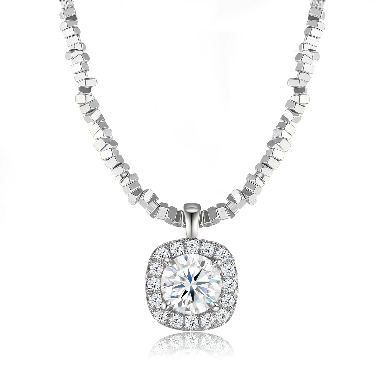 JIUZUAN Moissanite Square Pendant Necklace 925 Silver Plated Jewelry
