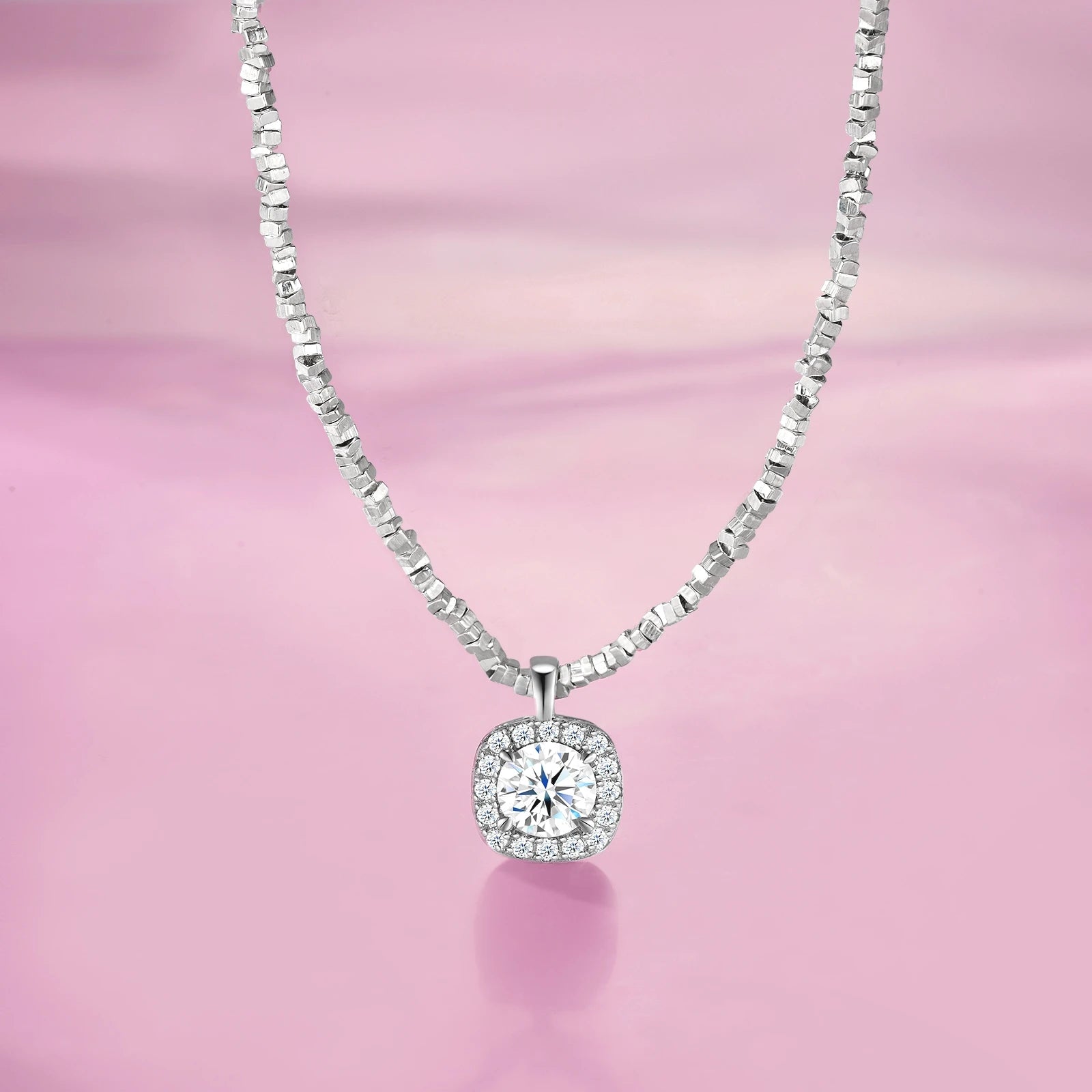 Shine with timeless elegance in the JIUZUAN Moissanite Square Pendant Necklace.