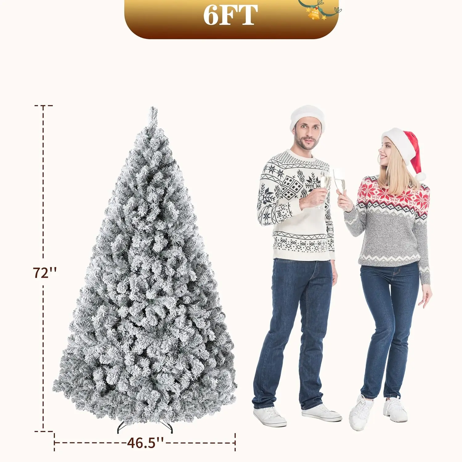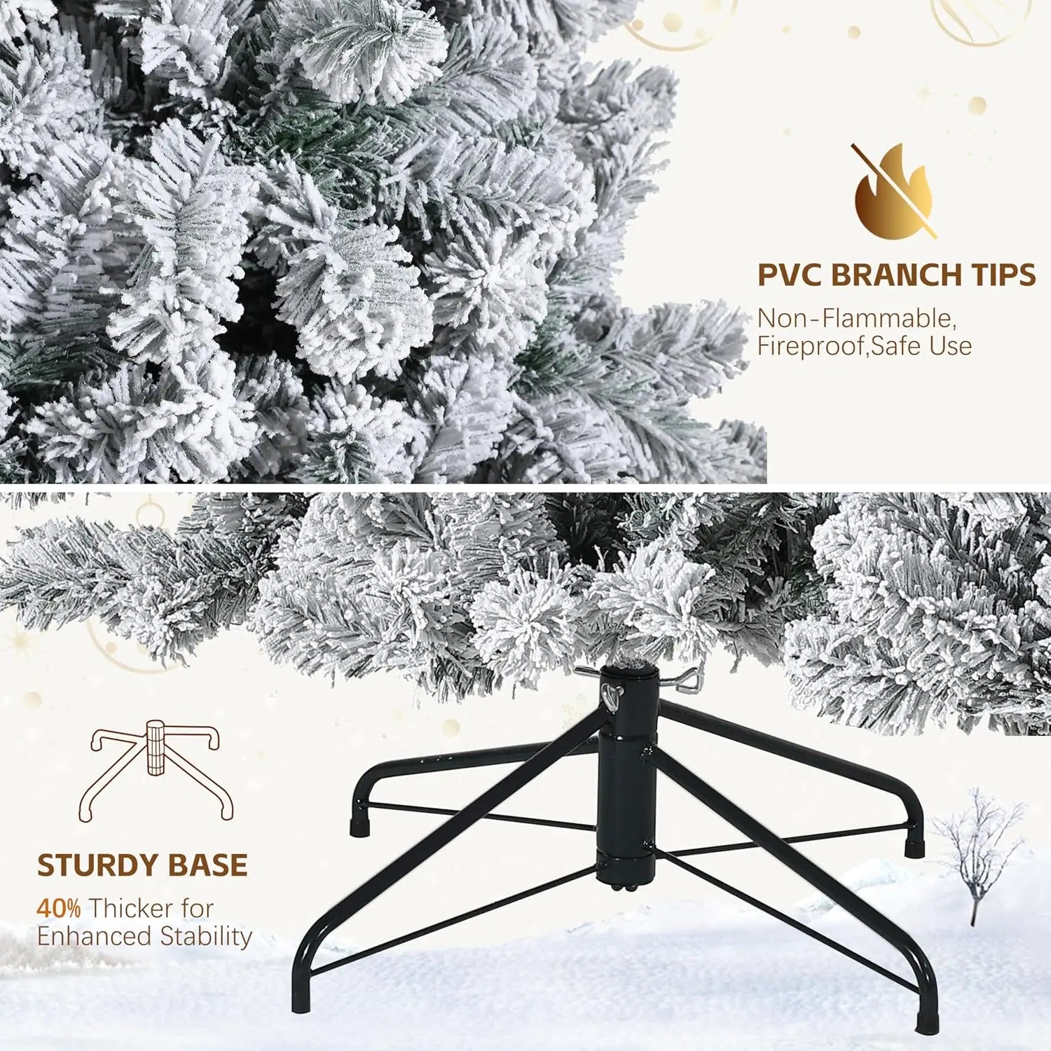 - Snow-flocked branches with hundreds to thousands of dense PVC tips deliver a full, lifelike silhouette that showcases every ornament.