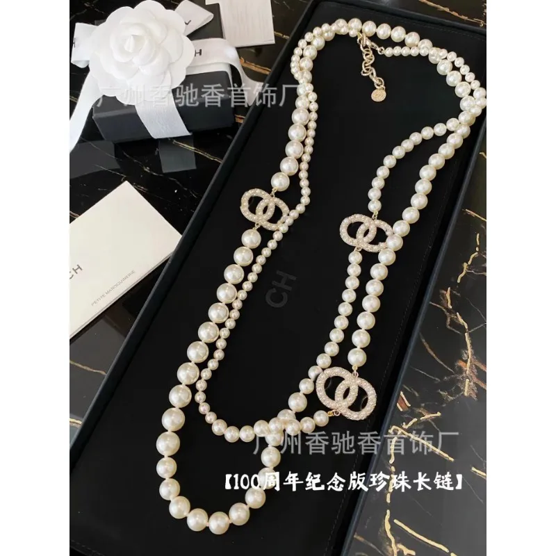 New Pearl Diamond Sweater Chain Temperament Versatile High Sense Double C Long Necklace Women