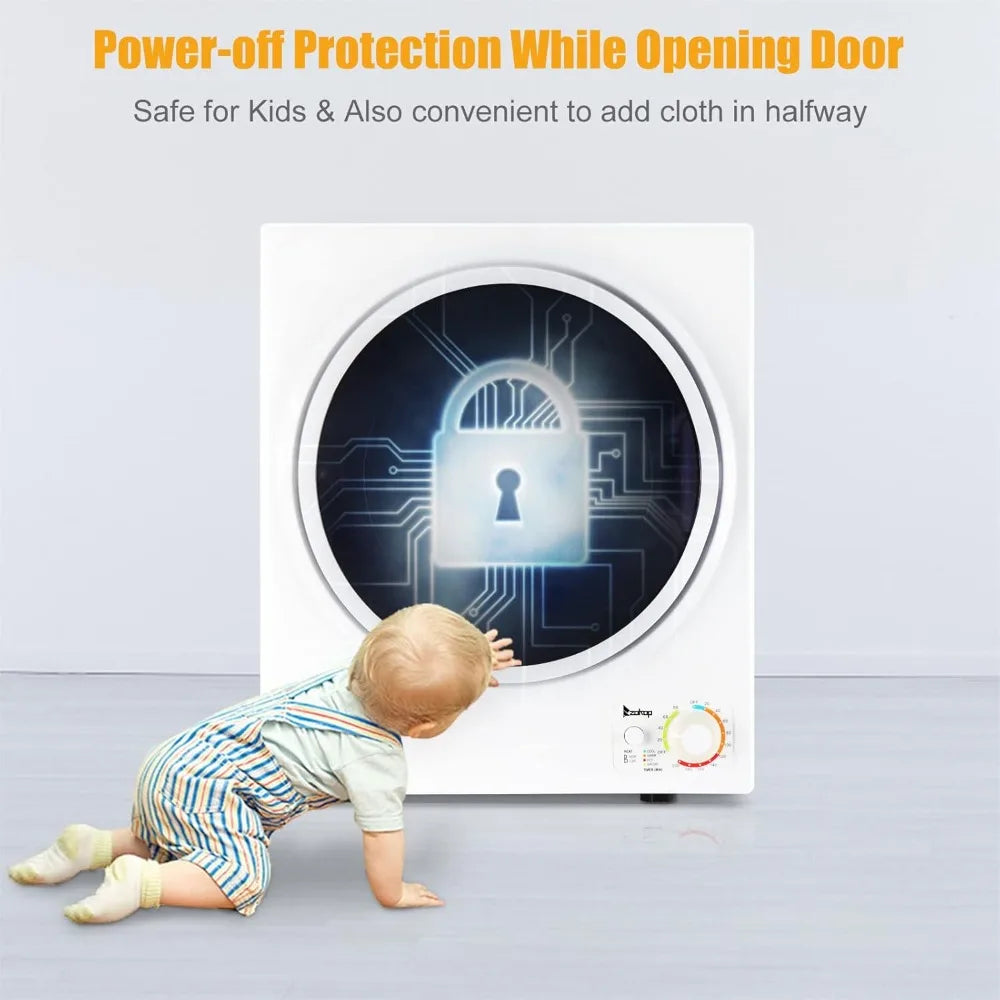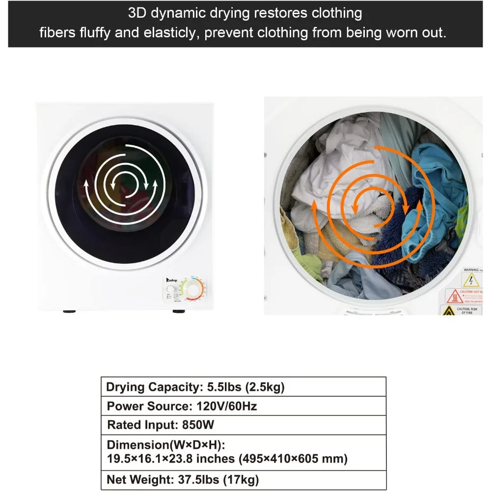 - Energy-efficient and portable — 850W, 5.5 lbs capacity, low noise, removable lint filter, and compact design ideal for drying small items like baby clothes, underwear, T-shirts, and socks.