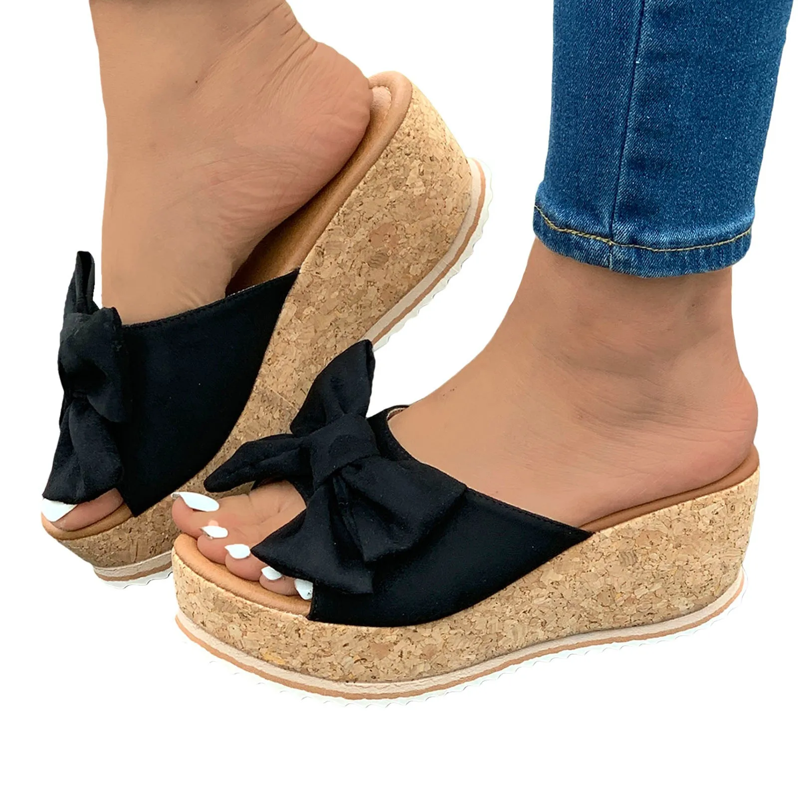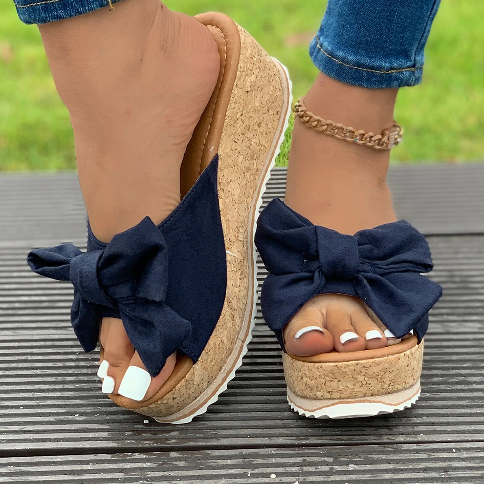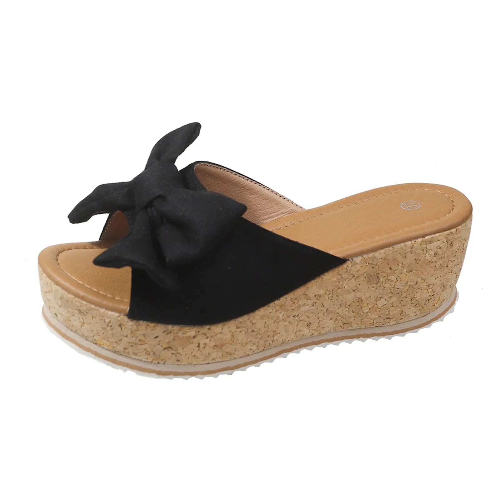 Platform Sandals Wedge Heels Women's Fashion New Slippers Wear A Flatform Bottom Bow