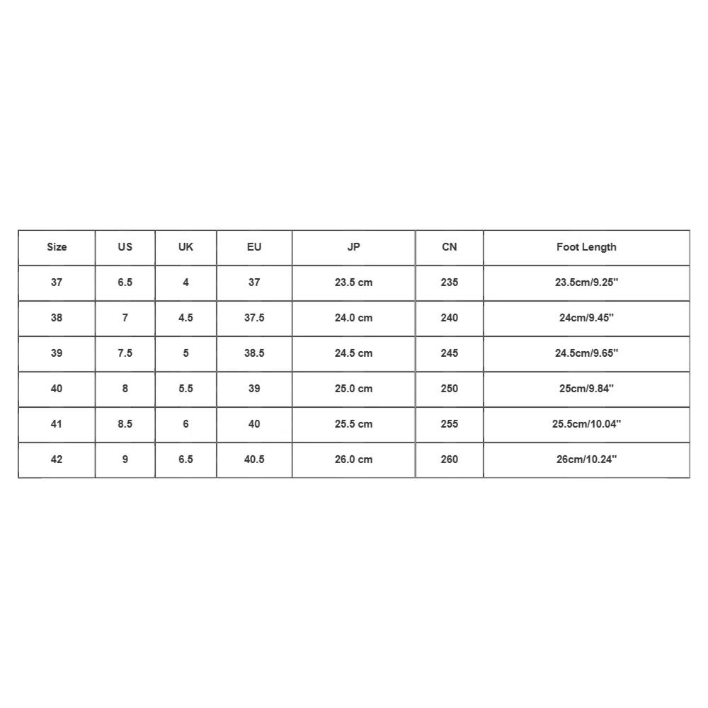 | Size:38 | US:7 | UK:4.5 | EU:37.5 | JP:24.0 cm | CN:240 | Foot Length:24cm/9.45'' |