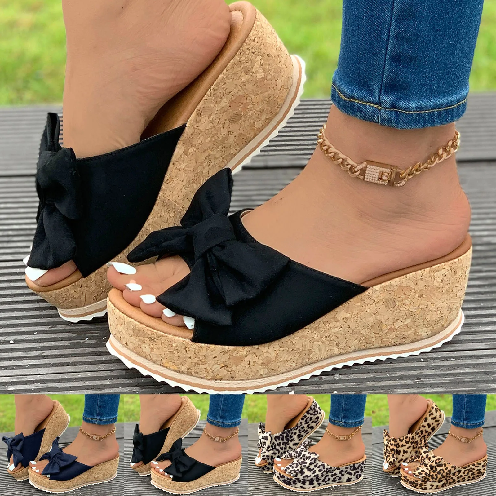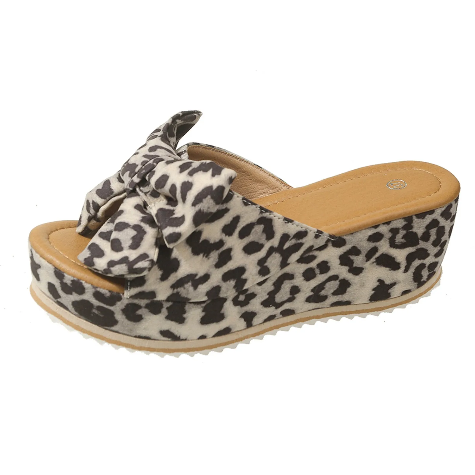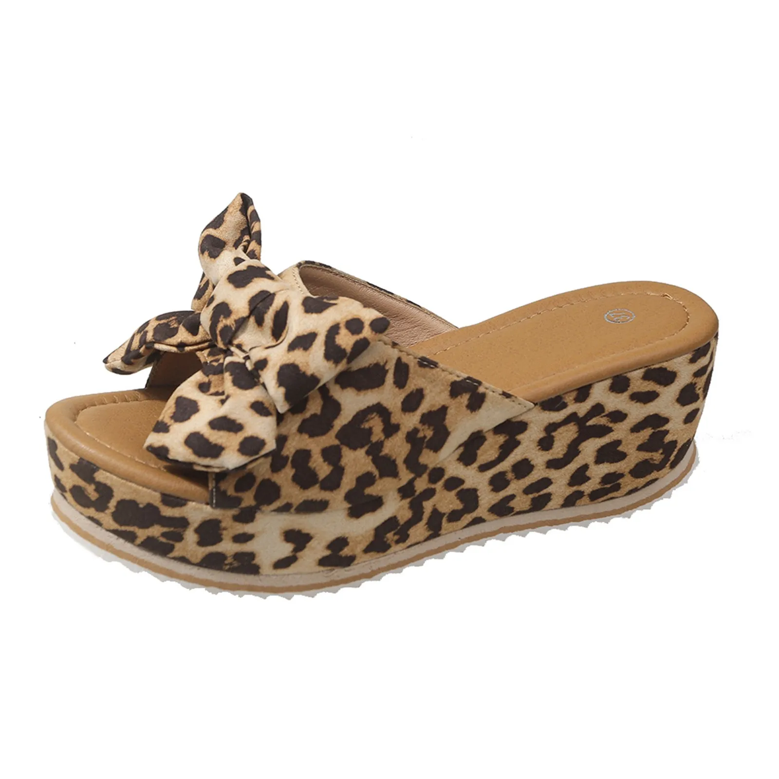 Women Shoes Summer Fashion Modern Slippers Outdoor Simple Princess Beach Slippers Women Bow Tie Wedge Leopard Ladies Shoes