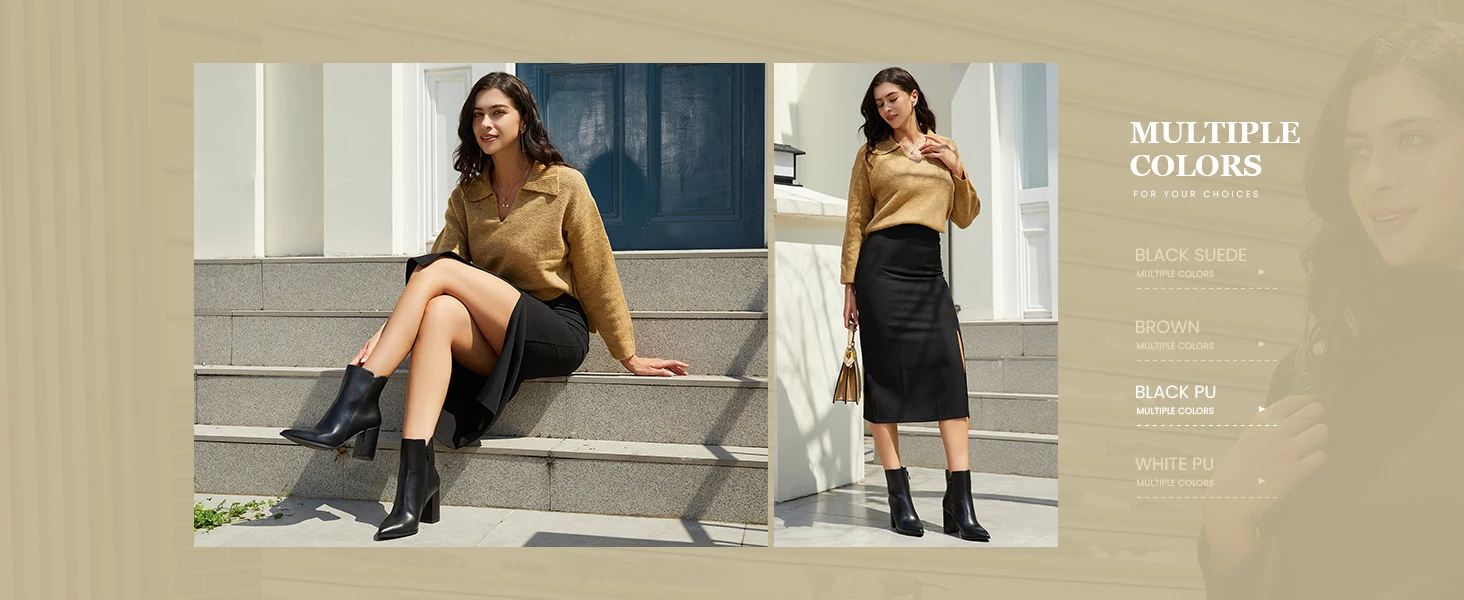 Design: With a practical side zipper, leather boots for women can easily slip on and off. The chic pointed-toe and side V-shaped cutout silhouette flatter your curves and enhance your fashion appeal